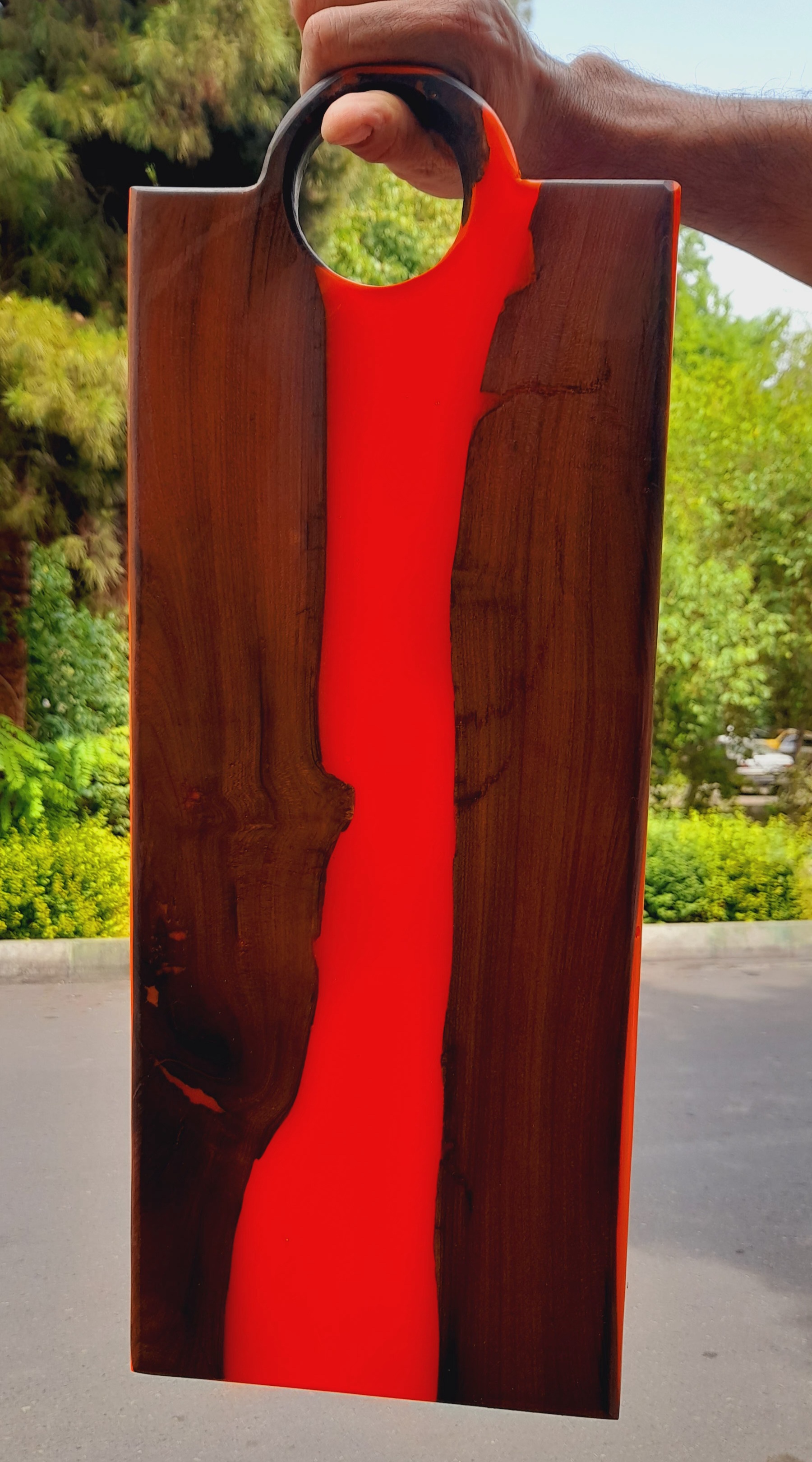 تخته سرو فینگرفود چوب سنجد و رزین بلک لایت پوشش با روغن گیاهی ابعاد : طول ۵۰ / عرض ۲۰ / ضخامت ۲/۵ سانت مناسب برای فینگرفود، کافهها، تخته کار، کادو