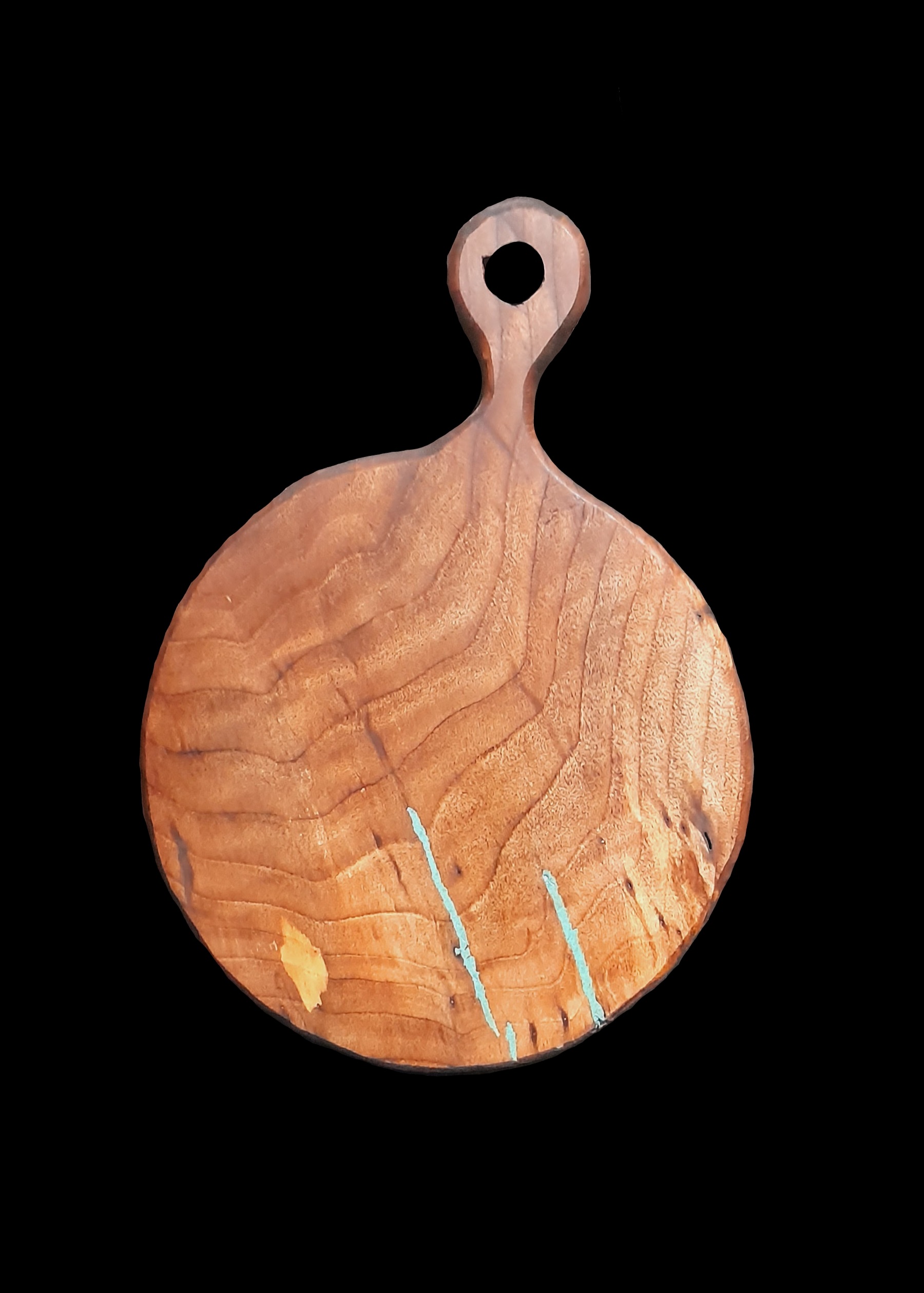 تخته سرو ، تخته گوشت و زیر پیتزایی 🪵چوب گردوی سیاه کردستان 📏 ابعاد : طول با دسته ۳۴ قطر ۲۵ ضخامت ۲ 🫒 پوشش با روغن گیاهی 🪚 دست ساز